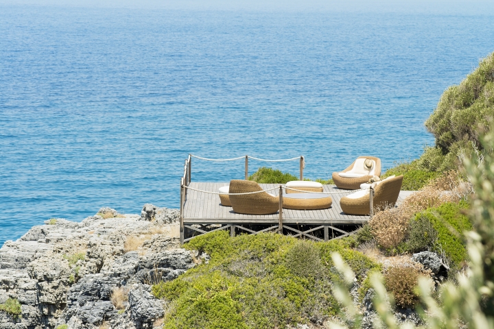 The villas’ stucco finish replicates the deep volcanic colours of the earth and the pebbles of the nearby beaches, while the traditional dry stone walls were built by skilled local stone masons, creating a setting that is in perfect harmony with the natural surroundings.