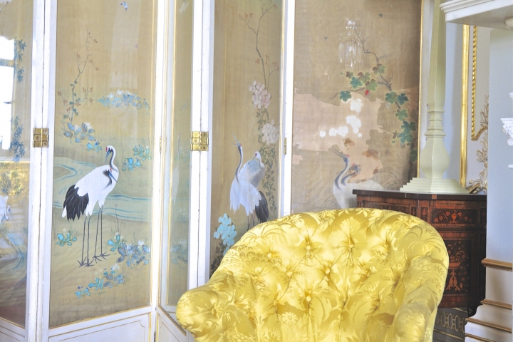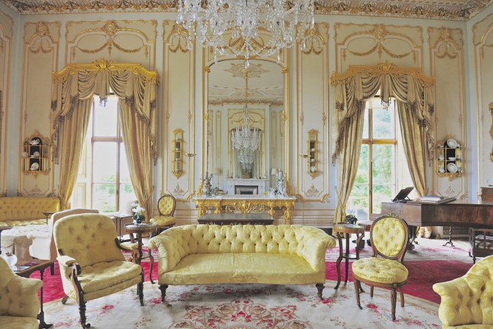 An iconic yellow and gold ornate ballroom and original wood panelled library