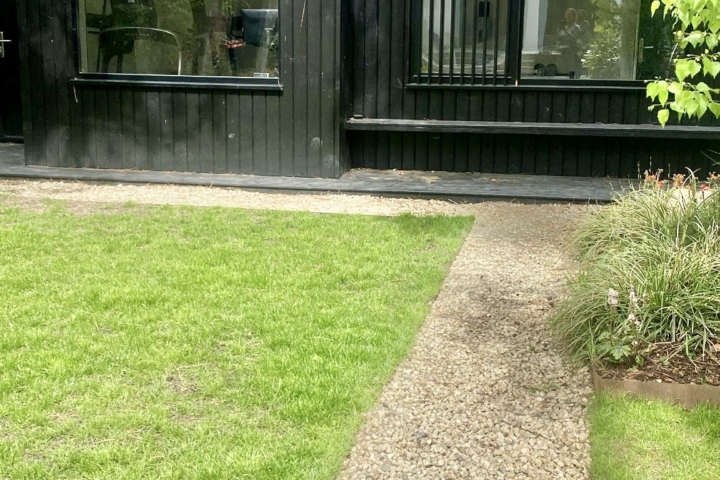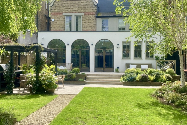Large open plan kitchen and dining that open onto lawn