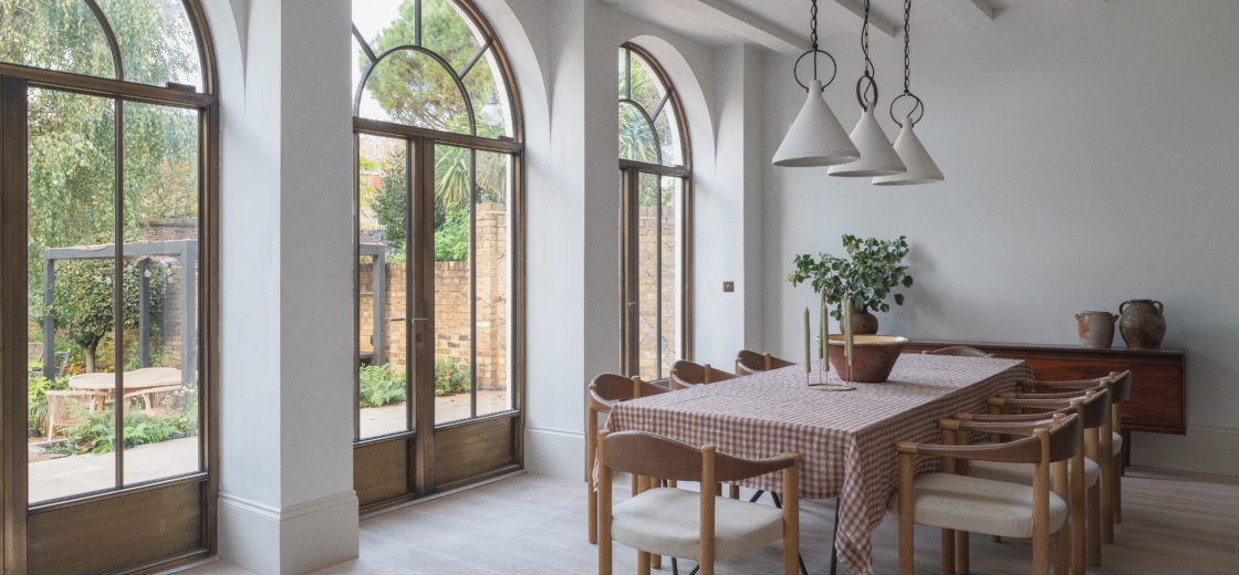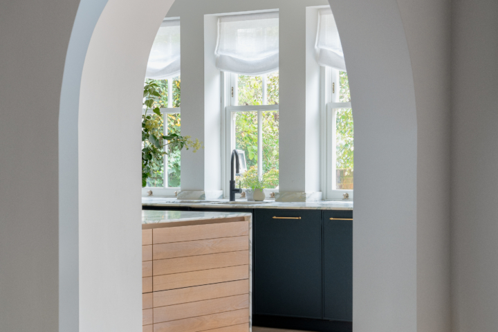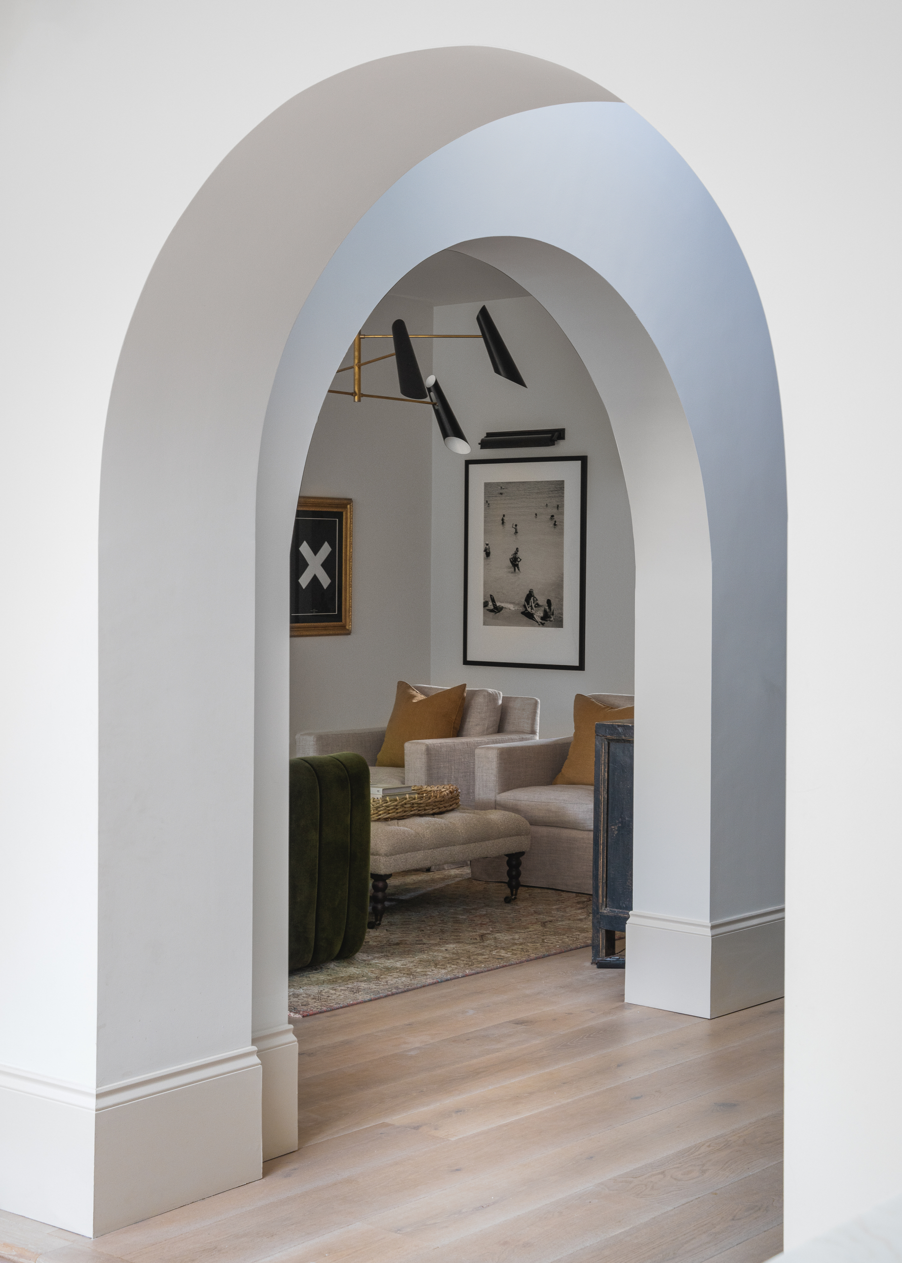 Arches continue inside between downstairs rooms